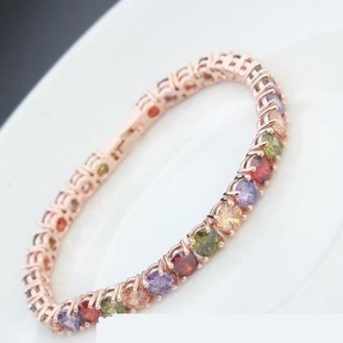 Módny pozlátený náramok s farebnými zirkónovými kamienkami.