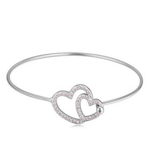 Módny medený náramok so vzorom dvojitého srdca a zirkónových kameňov.