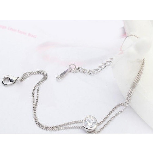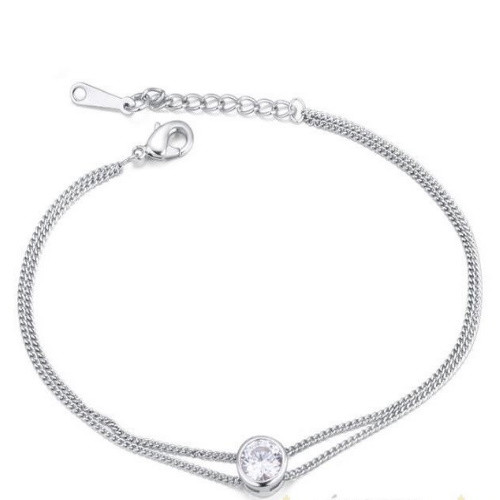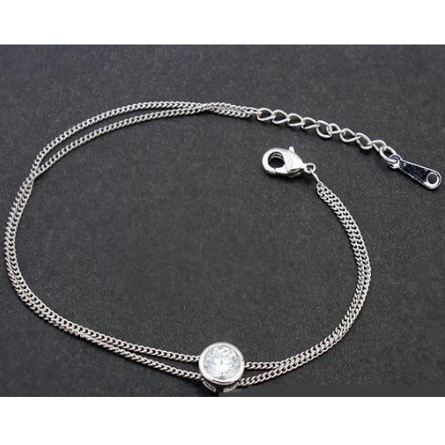 Dvojitá retiazka, rhodiovaný náramok s okrúhlym zirkónovým kameňom.