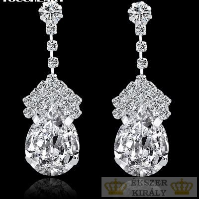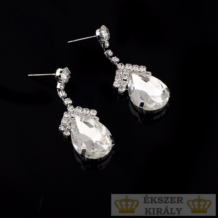Postriebrené náušnice v tvare kvapky zdobené kryštálmi, biele