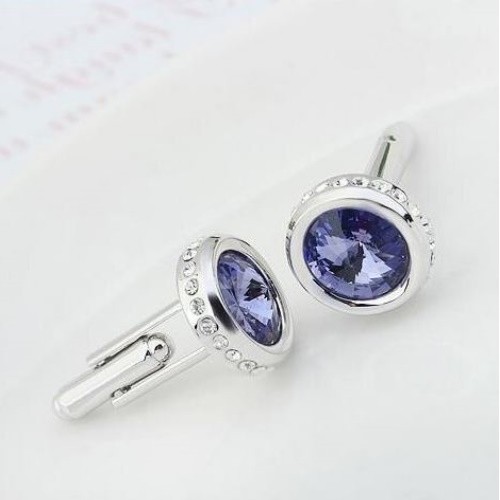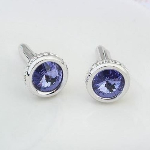 Manžetové gombíky s krištáľom Swarovski, okrúhle, tanzanit