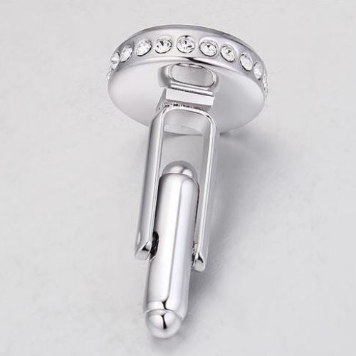 Elegantné, okrúhle manžetové gombíky zdobené kryštálmi Swarovski. Hmotnosť: 10,60 g.
