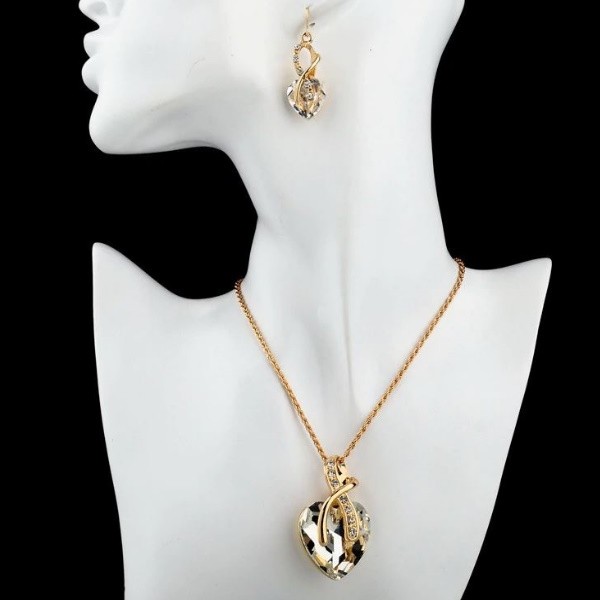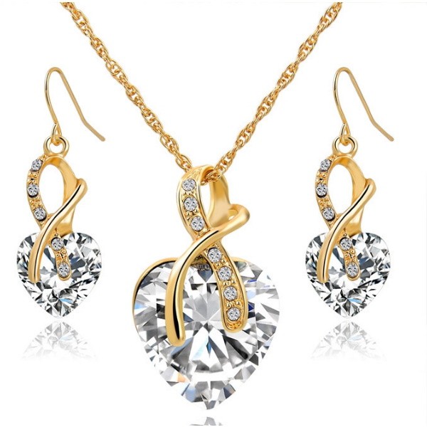 Pozlátená súprava náušníc a náhrdelníka v tvare srdca, biela