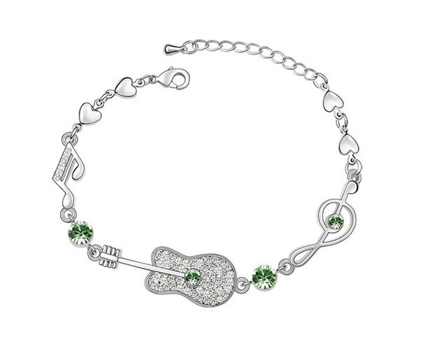 Módny náramok s príveskom v tvare gitary, kryštál Swarovski. Hmotnosť: 9,4 g. Dĺžka retiazky: 16 + 4 cm.