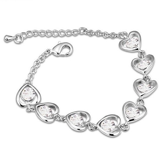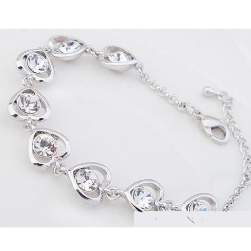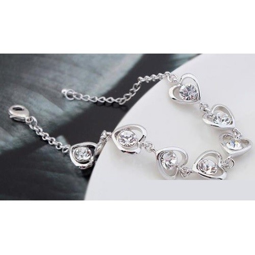 Elegantný štýlový rhodiovaný náramok so vzorom srdca a kryštálmi Swarovski.