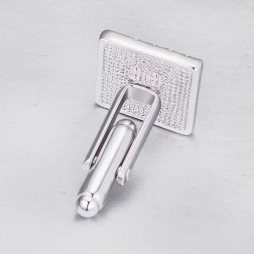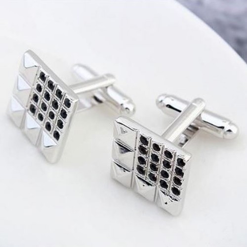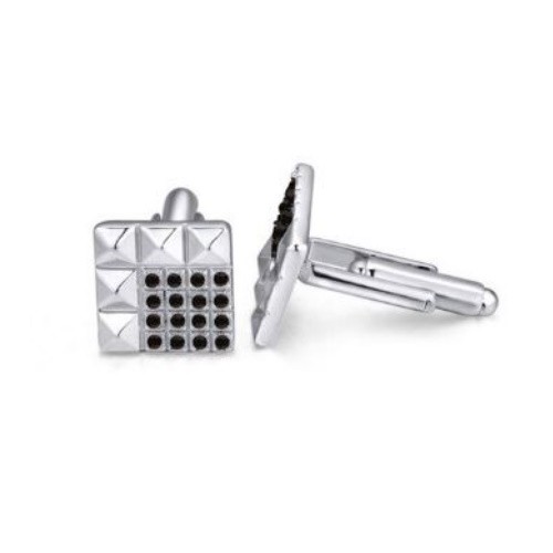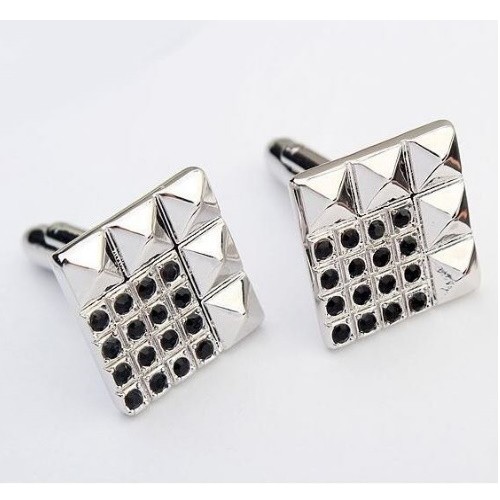Okrúhly manžetový gombík zo zliatiny zinku zdobený zirkónovým kryštálom. Jeho hmotnosť je 14,10 g.