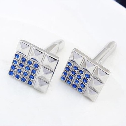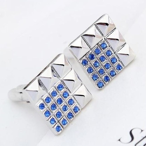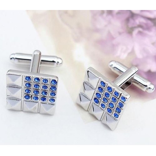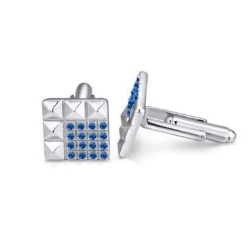 Okrúhly manžetový gombík zo zliatiny zinku zdobený zirkónovým kryštálom. Jeho hmotnosť je 14,10 g.