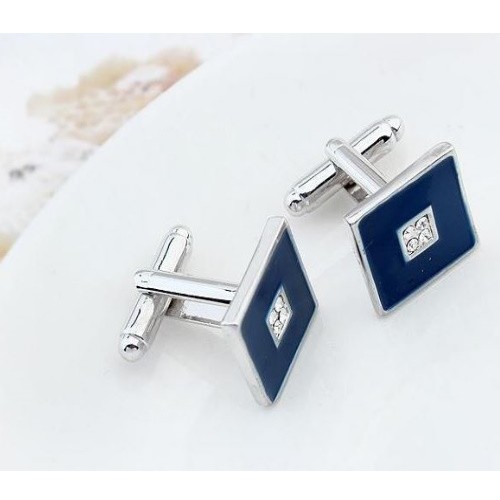 Manžetový gombík v klasickom štýle vyrobený zo zliatiny zinku s bielym kryštálom zirkónu v strede. Jeho hmotnosť je 11,2 g.
