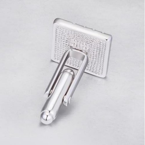 Manžetový gombík v klasickom štýle vyrobený zo zliatiny zinku s bielym kryštálom zirkónu v strede. Jeho hmotnosť je 11,2 g.