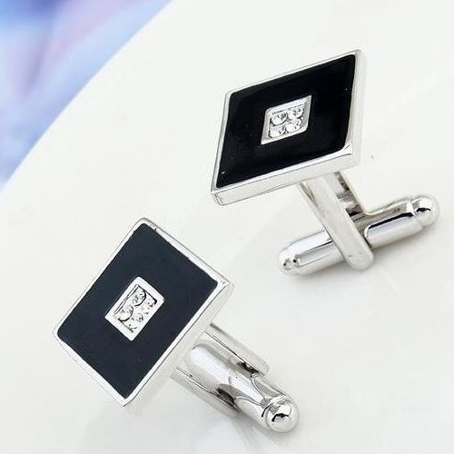Manžetový gombík v klasickom štýle vyrobený zo zliatiny zinku s bielym kryštálom zirkónu v strede. Jeho hmotnosť je 11,2 g.