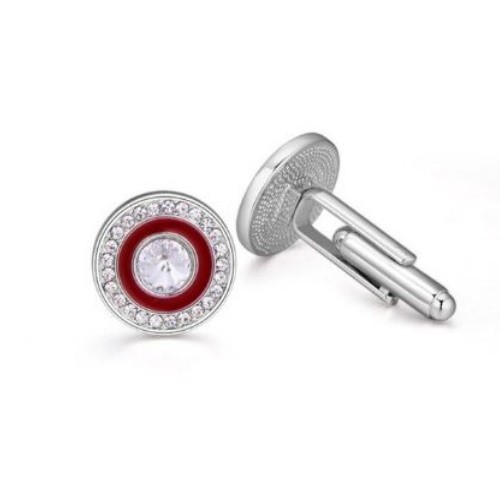Okrúhle manžetové gombíky zo zliatiny zinku zdobené kryštálmi Swarovski. Jeho hmotnosť je 11,3 g.