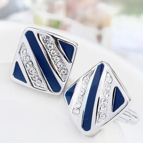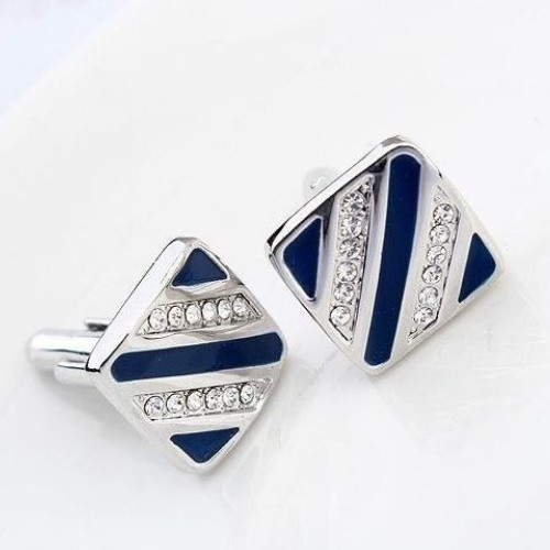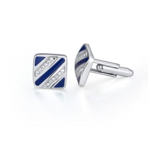 Manžetový gombík zo zliatiny zinku s dekoráciou zirkónia. Jeho hmotnosť je 15,1 g.
