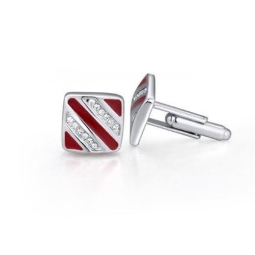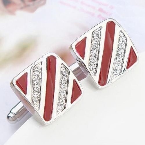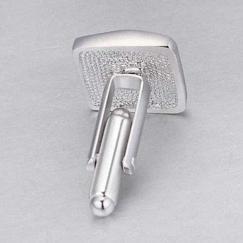 Manžetový gombík zo zliatiny zinku s dekoráciou zirkónia. Váži 15,1 g.