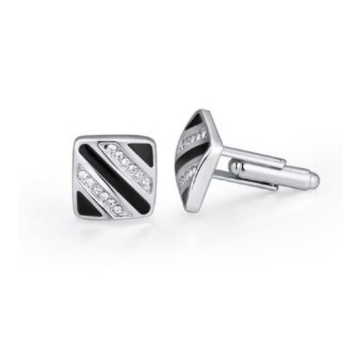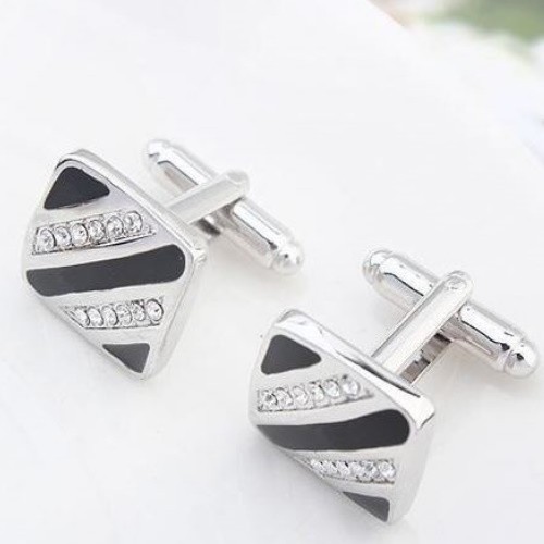 Manžetový gombík zo zliatiny zinku s dekoráciou zirkónia. Váži 15,1 g.