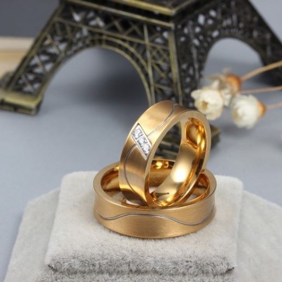 Dámsky snubný prsteň s vlnovkou, nehrdzavejúca oceľ, zlatá, veľkosť 5