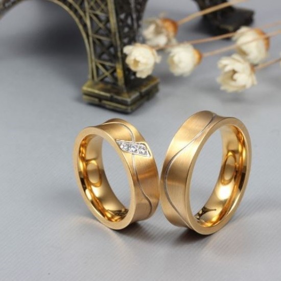 Dámska snubná obrúčka s vlnovkami, nerez, zlatá, veľkosť 8