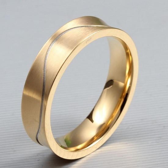 Pánsky snubný prsteň s vlnovkami, nehrdzavejúca oceľ, zlato, veľkosť 9