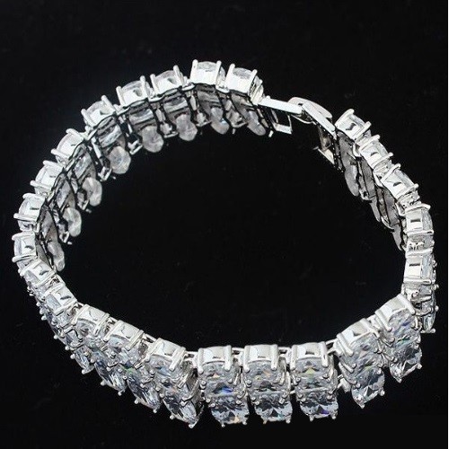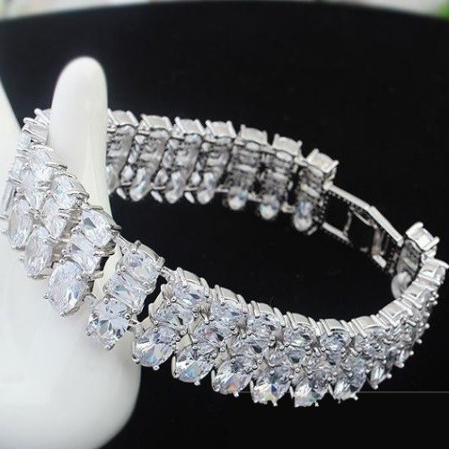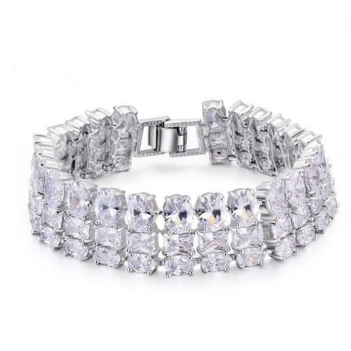 Elegantný rhodiovaný náramok s okrúhlymi, kockovými a oválnymi kameňmi.