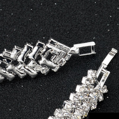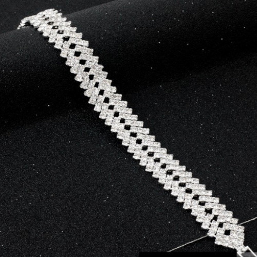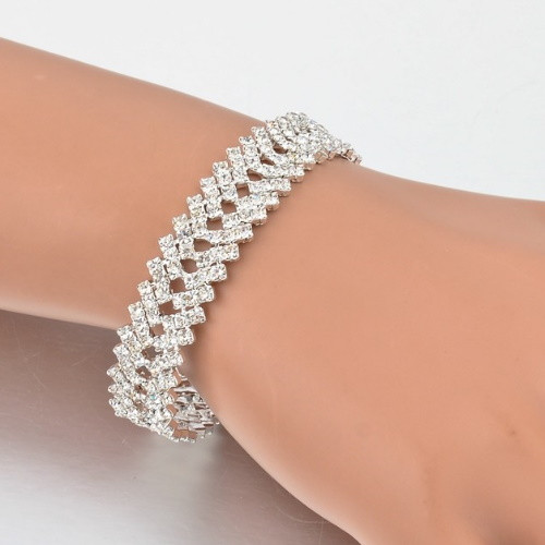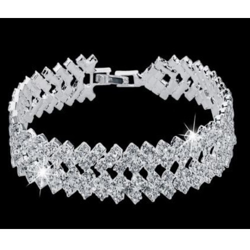 Dámsky náramok so zapínaním zdobený drobnými rakúskymi kryštálmi. Dĺžka 18,5 cm, šírka 1,3 cm, váha 8 g.