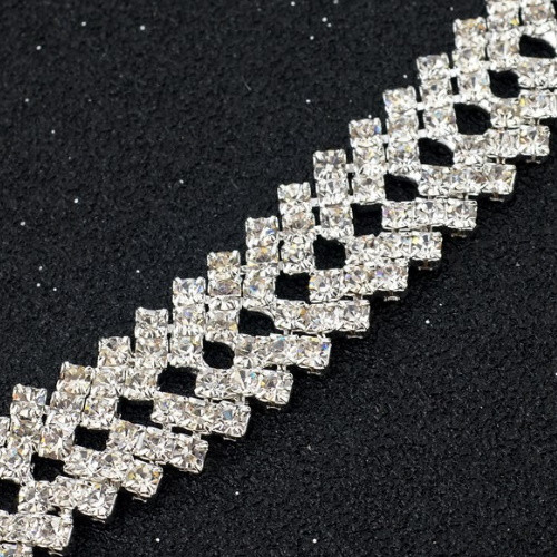 Náramok s geometrickým tvarom, zdobený kryštálmi.