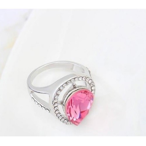 Prsteň v tvare kvapky, ružový, zdobený kryštálom Swarovski, 7.5