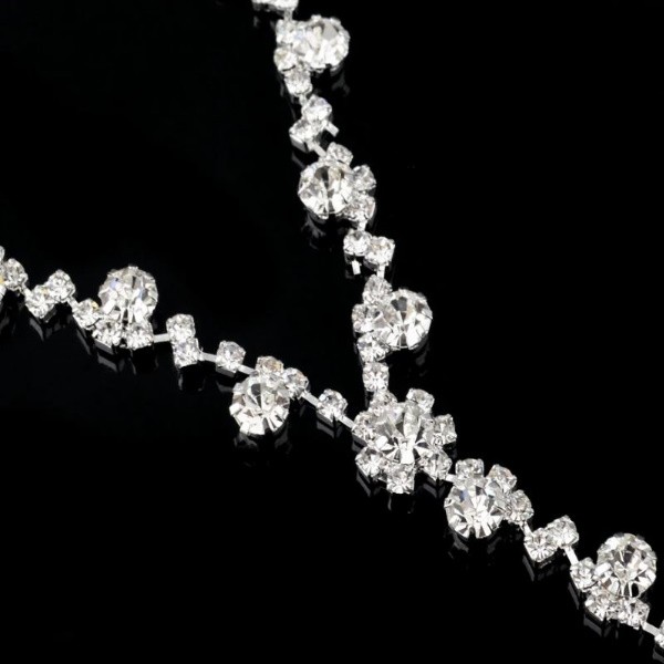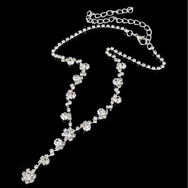 Náhrdelník z prírodnej zliatiny zinku, zapínaný na sponu. Jeho kvetinové prvky sú bohato vykladané bielym rakúskym krištáľom. Dĺžka retiazky je 35,5 + 11 cm, prívesok na nej má 3 cm.
