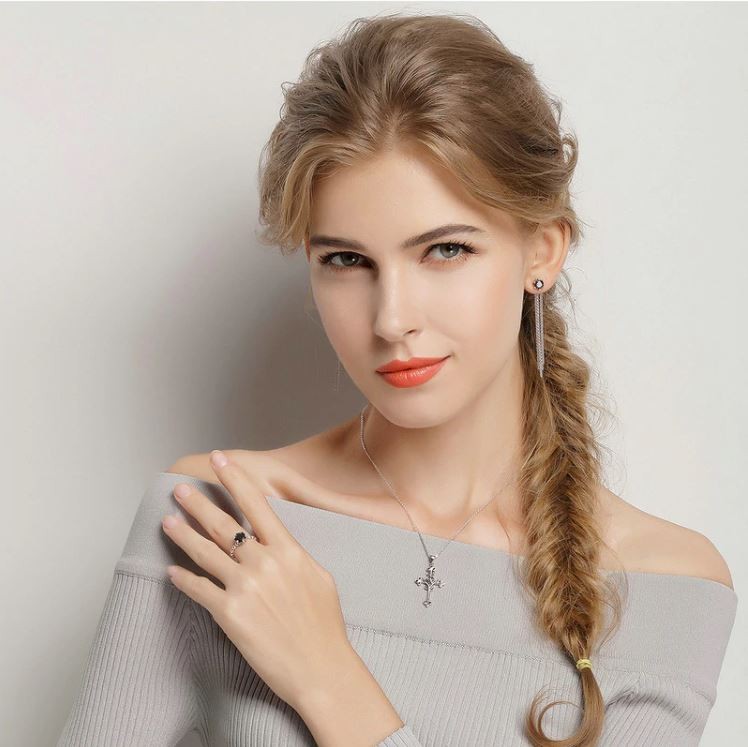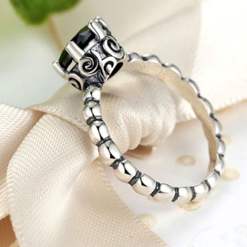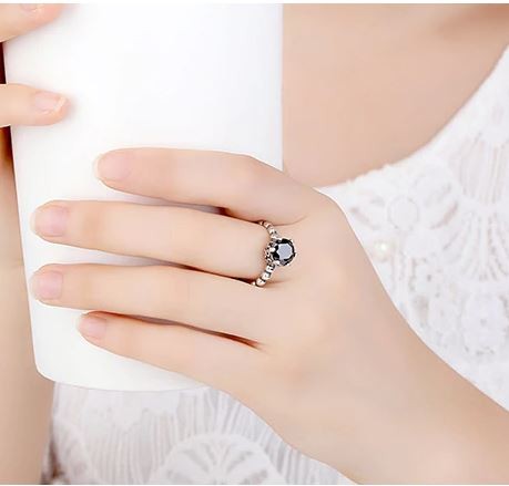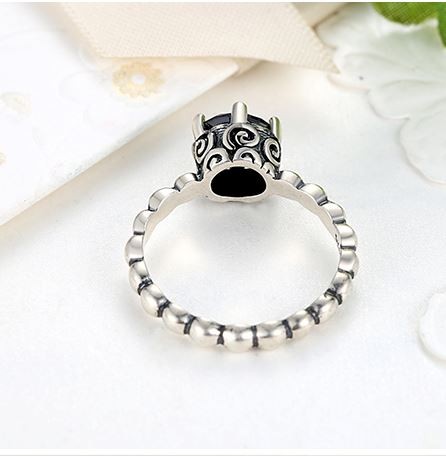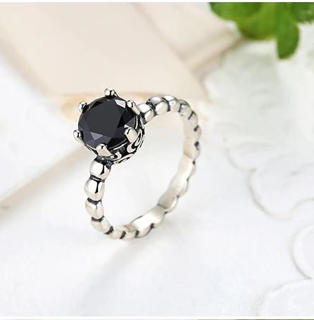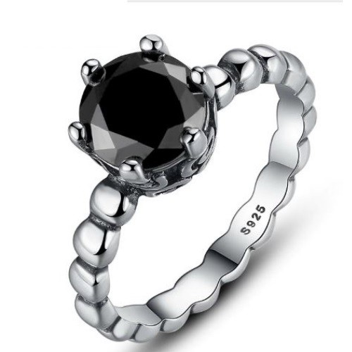 Elegantný, dámsky strieborný prsteň zdobený čiernym zirkónovým kryštálom. Bez olova, niklu a kadmia.