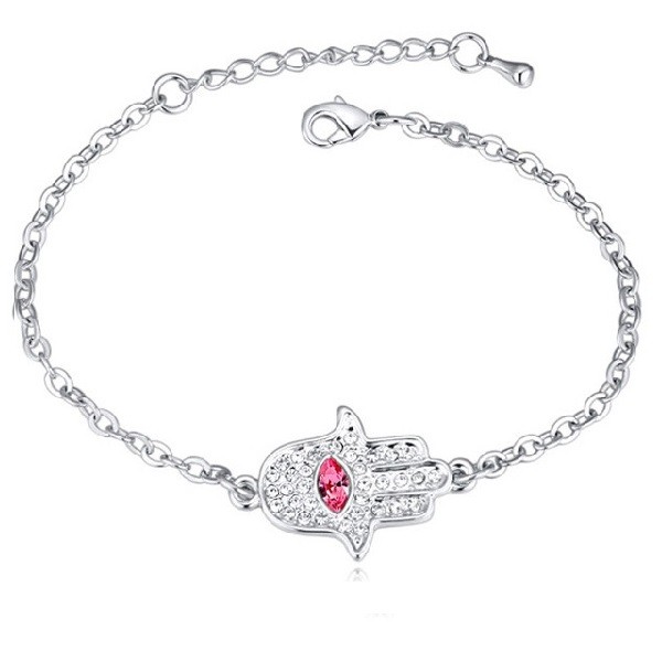 Módny náramok s kryštálmi Swarovski s motívom ruky Fatima. Dĺžka 16+4 cm. Dostupné v 3 farbách.