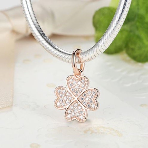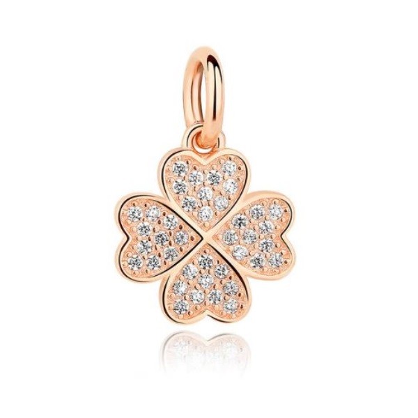 Strieborný ďatelinový prívesok so zirkónovými kamienkami, ružové zlato, ružové zlato