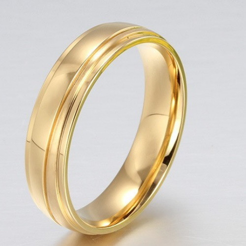 Pánsky snubný prsteň z ušľachtilej ocele v zlatej farbe.