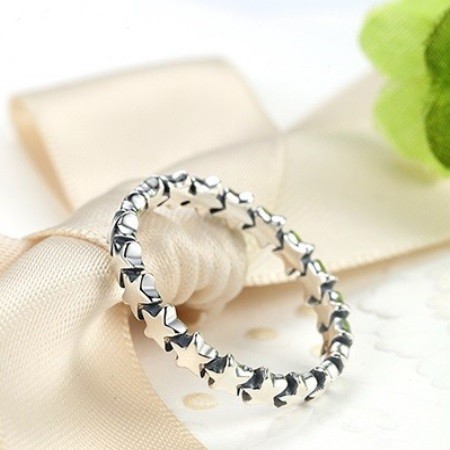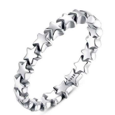 Strieborný prsteň so vzorom hviezd, veľkosť 8