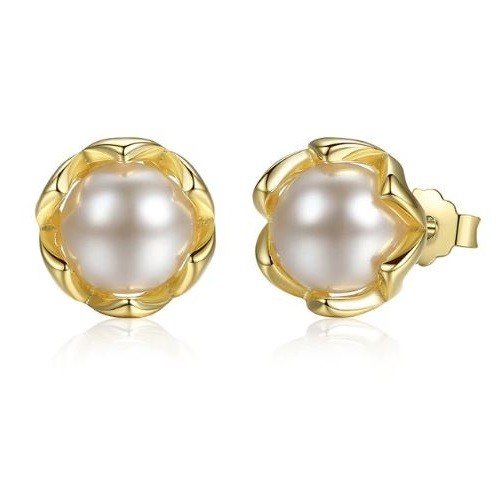 Strieborné náušnice s perlami, v tvare kvetu, v zlatej farbe