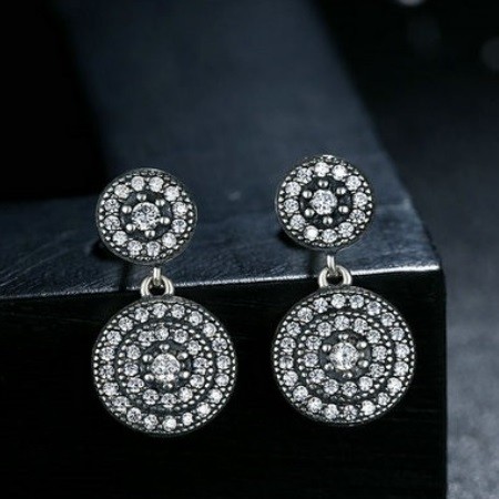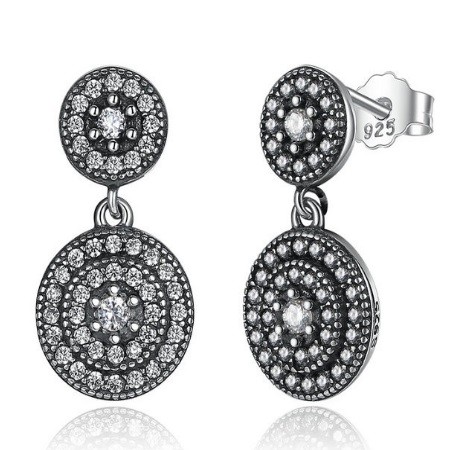 Starostrieborné kruhové náušnice zdobené kamienkami.