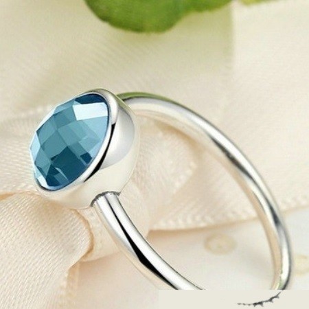 Okrúhly strieborný prsteň s kamienkami, Modrá, 8