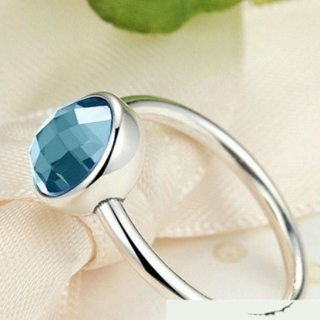 Okrúhly strieborný prsteň, modrý, 7