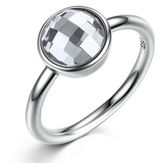 Okrúhly strieborný prsteň, biely, 6