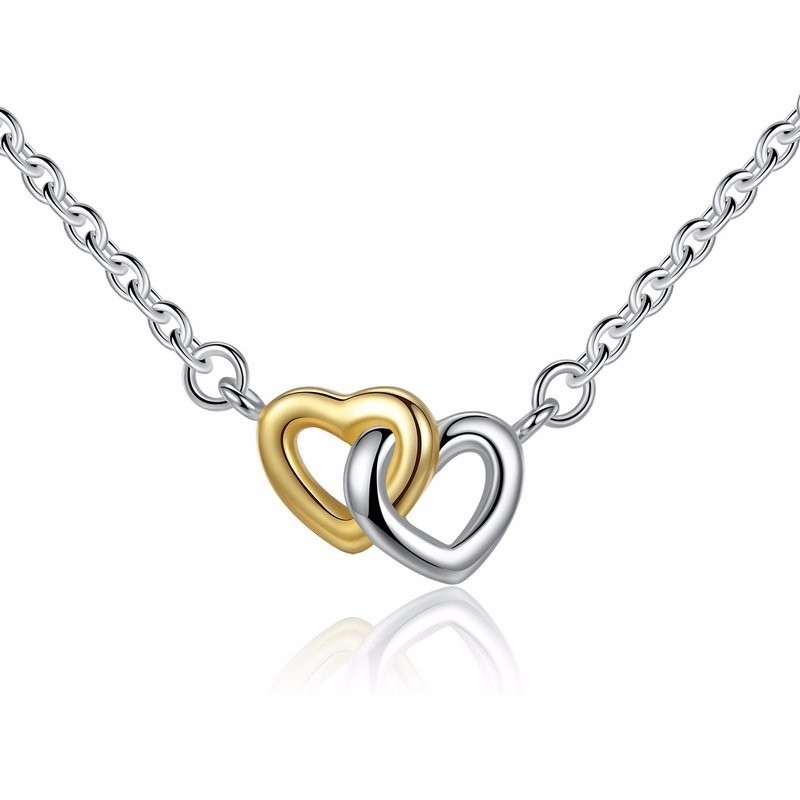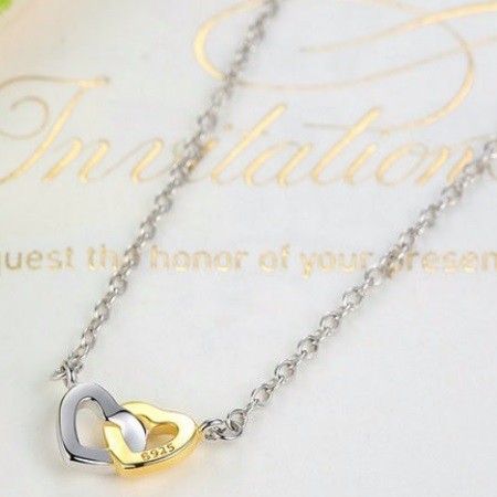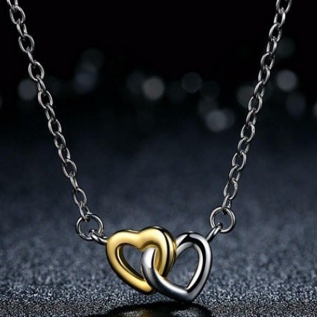 Strieborný náhrdelník zdobený dvoma malými srdiečkami.