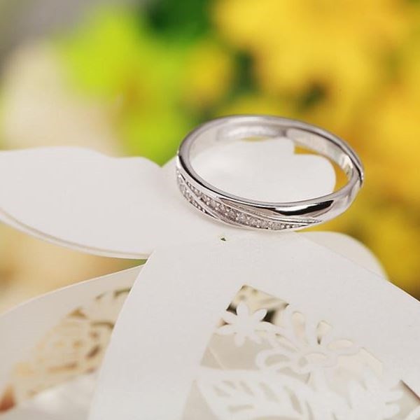 Dámsky svadobný prsteň zo striebra, nastaviteľná veľkosť, zdobený zirkónovým kryštálom. Veľkosť 5-8, váha 1,75 g.