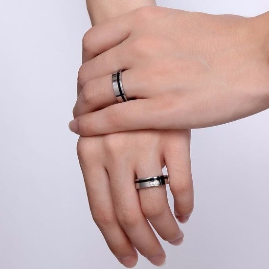 Dámsky svadobný prsteň vyrobený z nerezovej ocele, zdobený čiernym prúžkom a zirkónovým kryštálom. Šírka 6 mm, váha 4,9 g Snubná obrúčka je vyrobená z pevnej nerezovej ocele. Jeho farba je 100% odolná proti opotrebovaniu