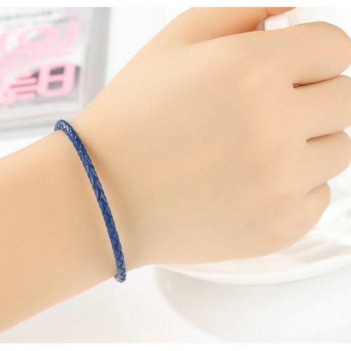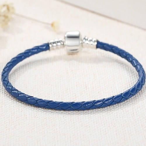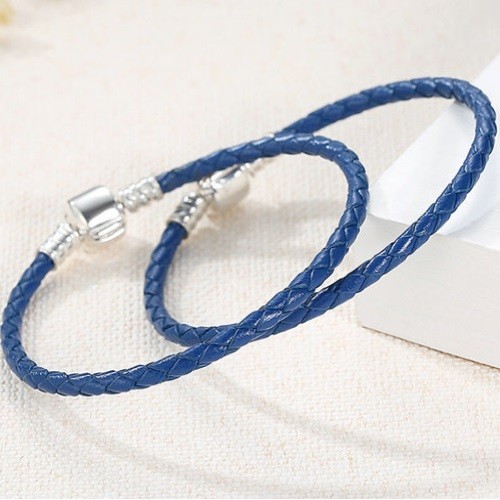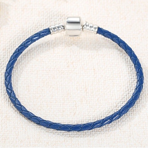 Pletený náramok, kožený, modrý, so strieborným zapínaním, 18 cm