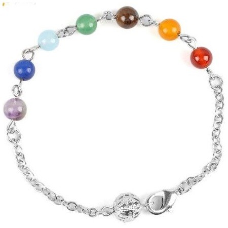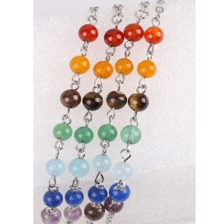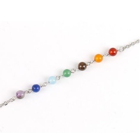 Náramok na vyvažovanie 7 čakier. Dĺžka cca. 19,5 cm, materiál je meď, s platinovým povlakom.