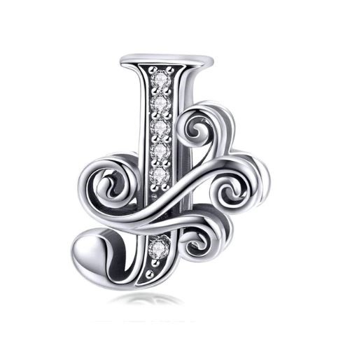 Prívesok s písmenom vo vintage štýle vykladaný malými bielymi zirkónovými kamienkami na náramok alebo náhrdelník.