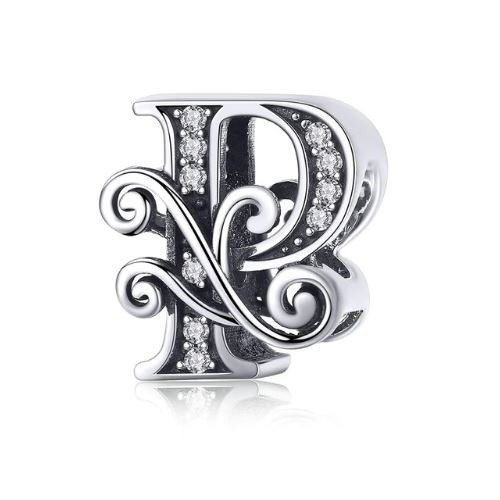 Prívesok s písmenom vo vintage štýle vykladaný malými bielymi zirkónovými kamienkami na náramok alebo náhrdelník.