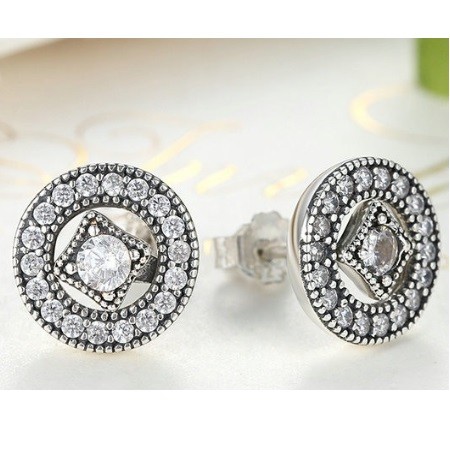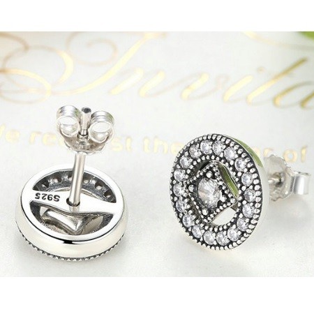 Nasúvacie strieborné náušnice s bohatým štrasovým zdobením.