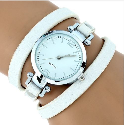 Dámske náramkové hodinky s trojitým koženým remienkom, biele