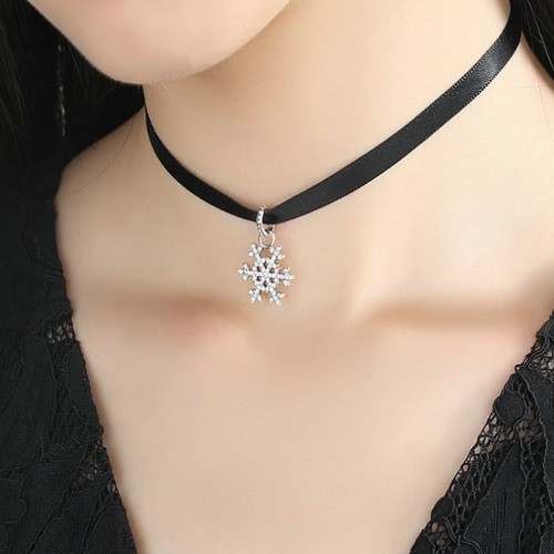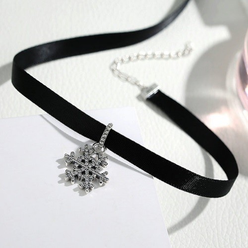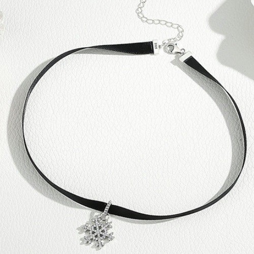 Čierny nákrčník klasického štýlu so strieborným príveskom. Dĺžka remienka je 31+7 cm, veľkosť prívesku je 2,1 x 1 cm.