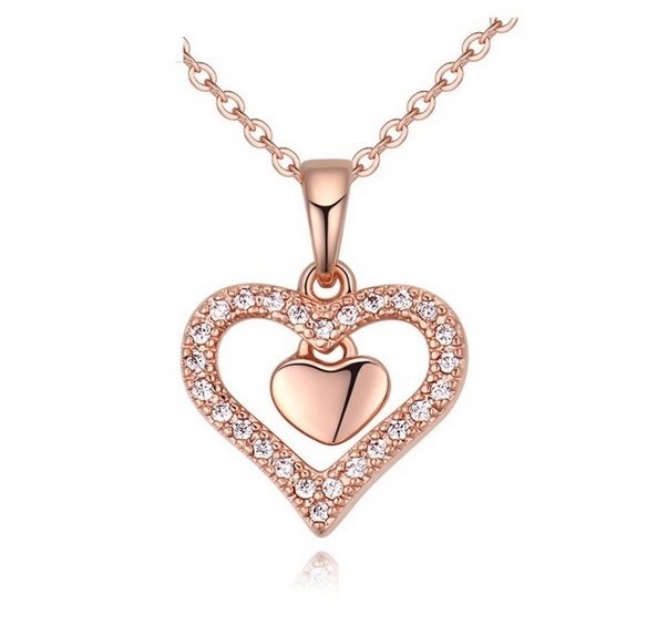 Elegantný štýlový náhrdelník s dvojitým srdiečkom vyrobený z medi so zirkónovými kameňmi.