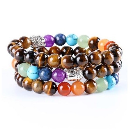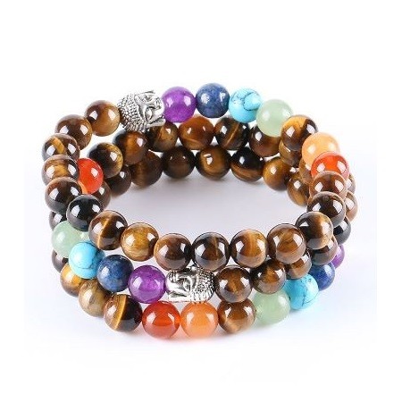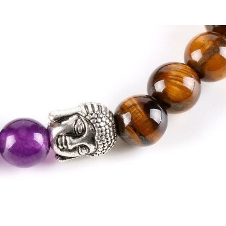 Meditácia, náramok harmonizujúci čakru s hlavou Budhu, polodrahokamy. Tigrie oko má posilňujúci účinok na kosti a kĺby, pôsobí aj proti stuhnutosti pohybového aparátu. Posilňuje dýchacie cesty, a preto je účinným pomocníkom proti prechladnutiu, kašľu, dokonca aj zápalu priedušiek a astme. Je účinný proti širokému spektru nervových chorôb, od zápalu nervov cez epilepsiu až po schizofréniu.