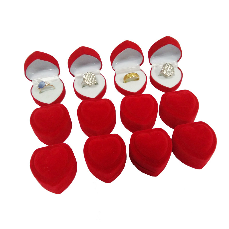 Zamatom potiahnutá šperkovnica v tvare srdca na prstene a náušnice.