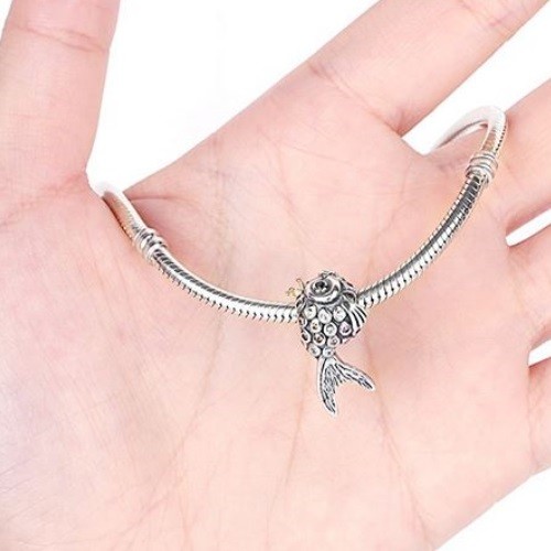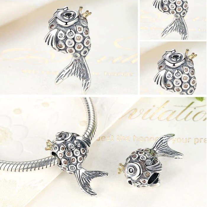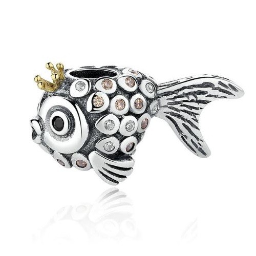 Strieborná perla v tvare ryby zdobená drobnými kryštálmi. Na náramok alebo náhrdelník.